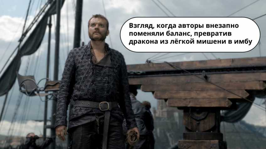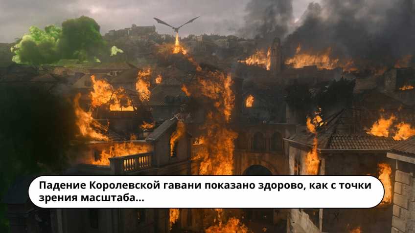 То драконы оказываются беспомощны против «скорпионов» Грейджоев, словно мухи против мухобойки, а уже в следующей Дрогон играючи разносит и флот, и город, ощетинившийся такими же «скорпионами».