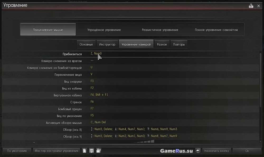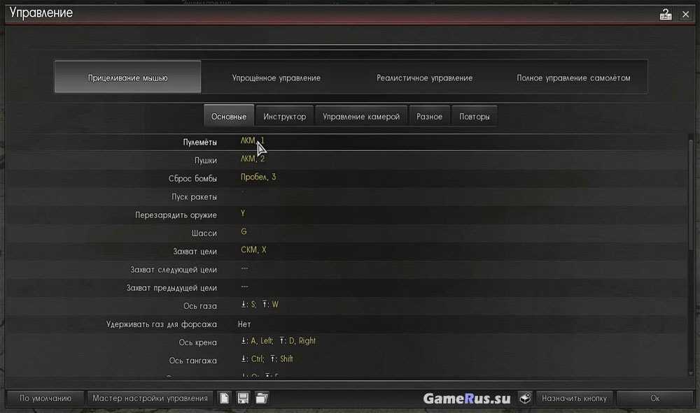 «Перезарядить оружие» – у нас установлено «Y», сейчас это в принципе не нужно, потому что перезарядка происходит в аркадных боях и только на аэродроме. В воздухе вы не перезарядитесь.