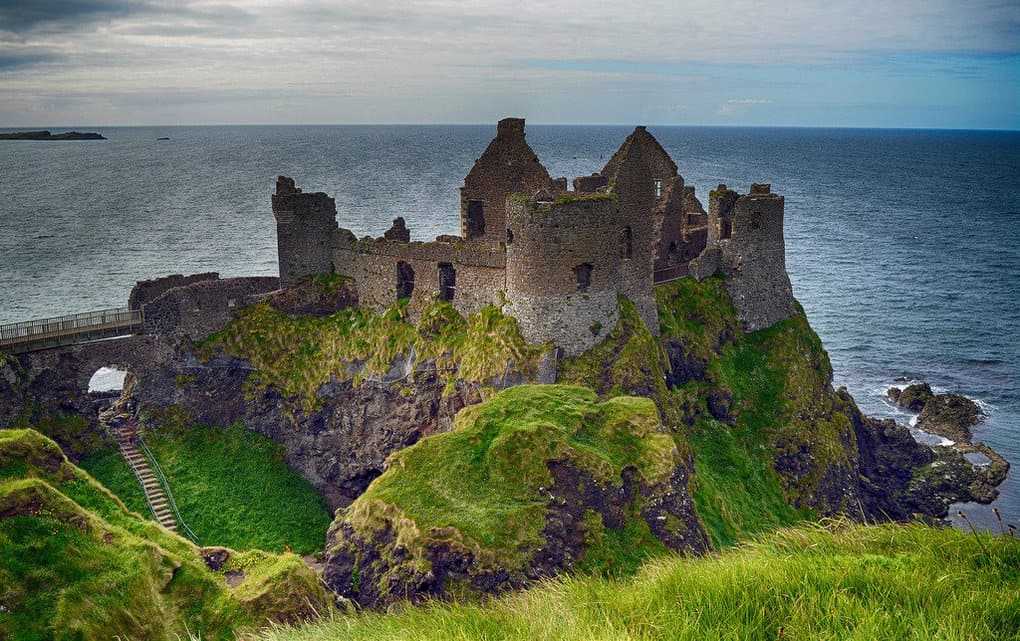 Руины этого – когда-то внушительного и величественного – замка в Северной Ирландии находятся на 30-метровой скале над морем и окружены со всех сторон такими же неприступными скалами чёрного базальта.
