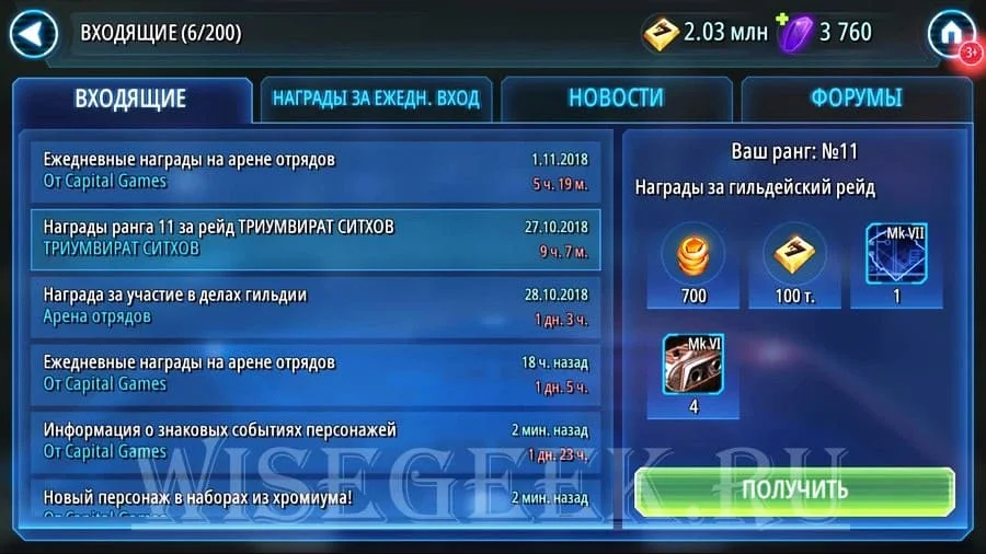 - Ежедневные награды за Ваш ранг на арене отрядов.